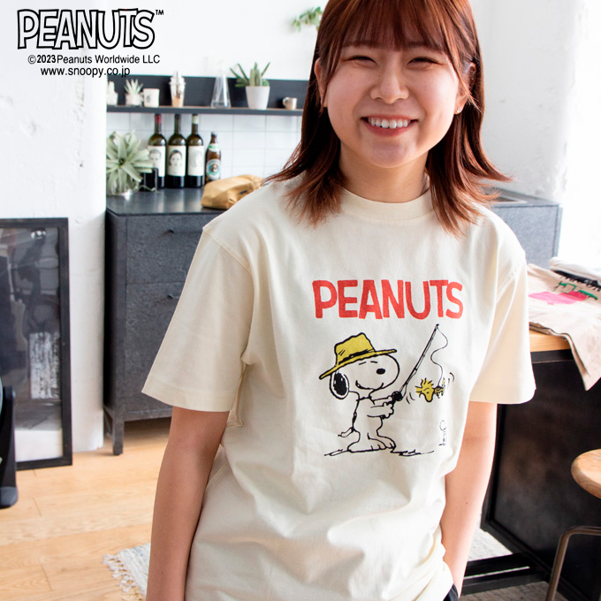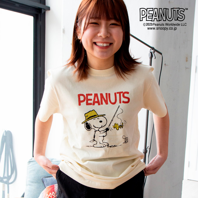 ムラ染めにすることで独特の風合いに仕上げた、ヴィンテージのような雰囲気を醸し出すPEANUTSのプリントTシャツ。