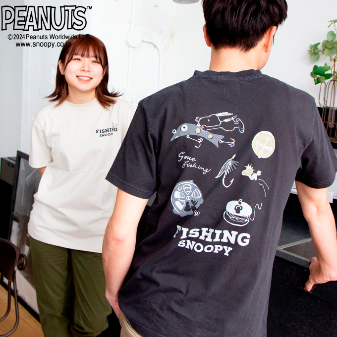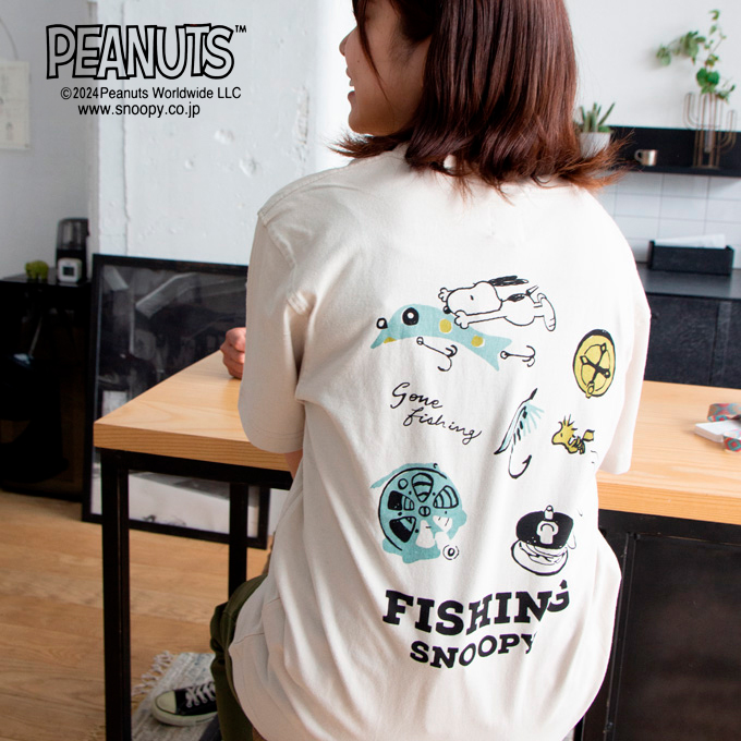 釣り道具に囲まれたスヌーピ&ウッドストックが可愛い。