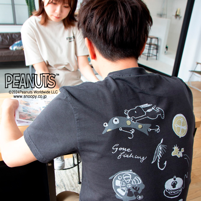 ムラ染めにすることで独特の風合いに仕上げた、ヴィンテージのような雰囲気を醸し出すPEANUTSのプリントTシャツ。