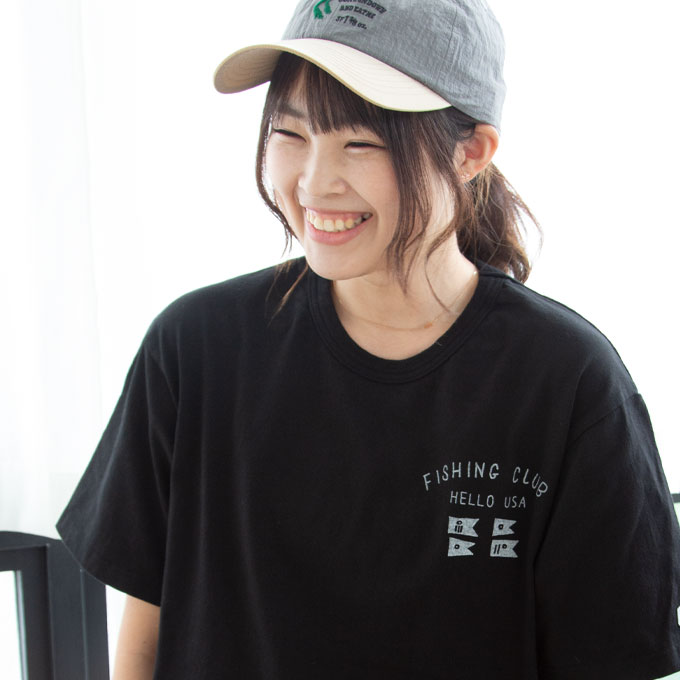 ルアーを見つめるバスのイラストを大胆にプリント。