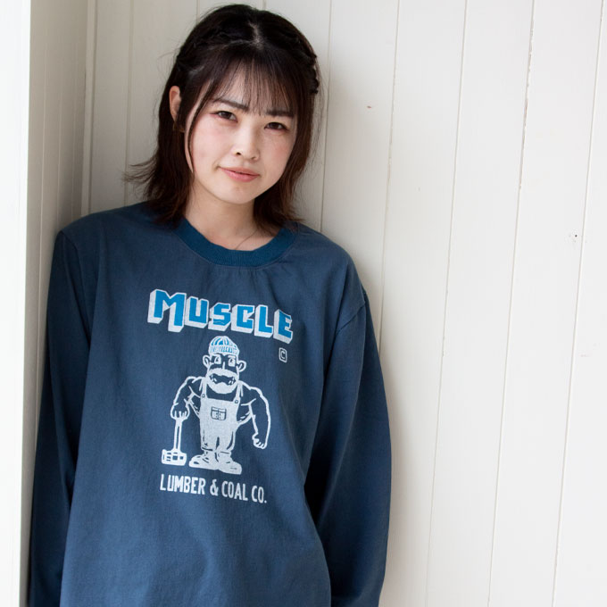 さらにアームと首回りのリブを太めのリブ仕様にしてスウェットライクな仕上がりにした逸品です。