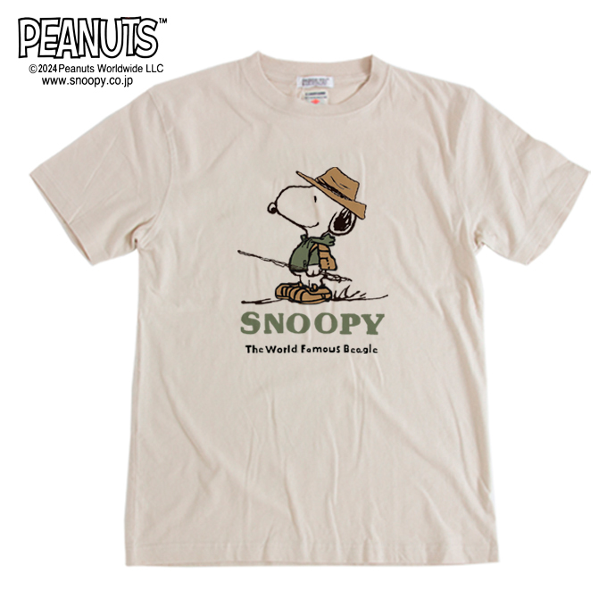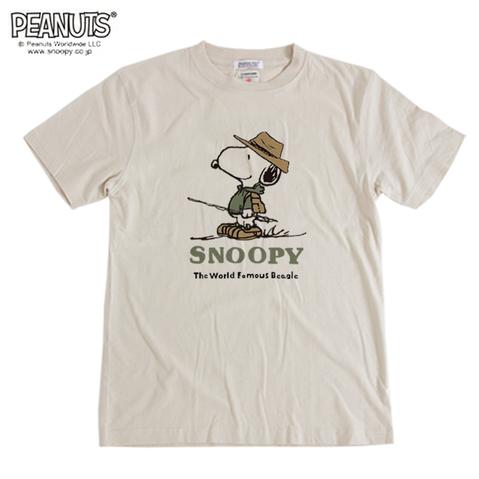 【LUMBER】と【PEANUTS】の後染めによる独特の風合いがかっこいい別注Tシャツ。 SNOOPYが釣りに行く姿が、可愛らしいデザイン!! サイズも少し大きめなのでゆったり着られる一枚です。