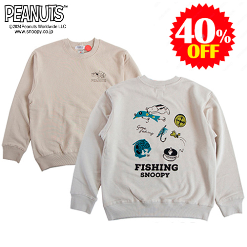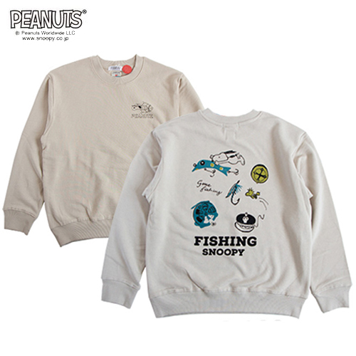 釣り道具に囲まれたスヌーピー&ウッドストックが可愛い! フロントのスヌーピールアーもポイントです。