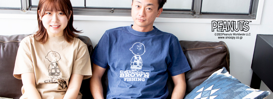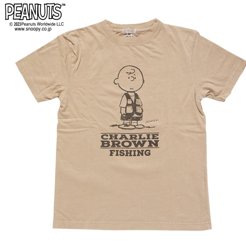 【LUMBER】と【PEANUTS】の後染めによる独特の風合いがかっこいい別注Tシャツ。 フィッシングベストを着たチャーリーが可愛い。 サイズも少し大きめなのでゆったり着られる一枚です。