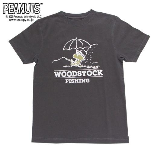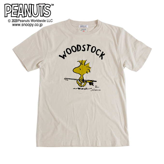 【LUMBER】と【PEANUTS】の後染めによる独特の風合いがかっこいい別注Tシャツ。 のんびりと釣りをしているウッドストックが癒される サイズも少し大きめなのでゆったり着られる一枚です