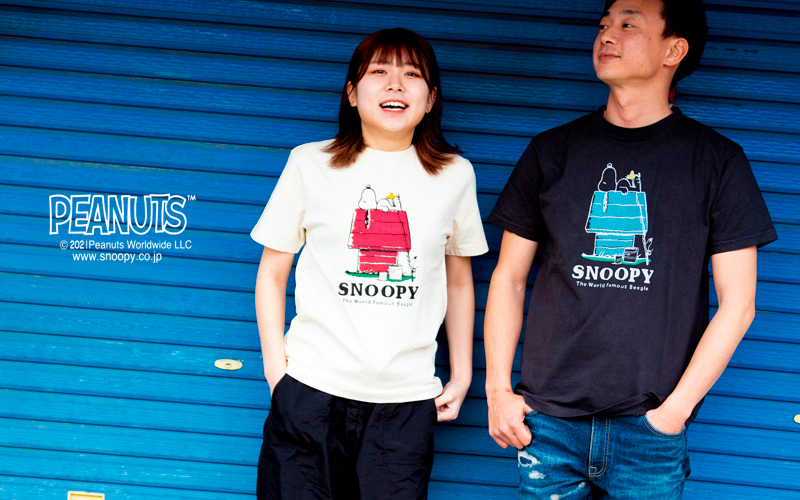 【LUMBER】と【PEANUTS】の後染めによる独特の風合いがかっこいい別注Tシャツ。 SNOOPYとWOODSTOCKが釣りで疲れたんでしょうね いつもの小屋でお昼寝中の可愛らしいデザイン! サイズも少し大きめなのでゆったり着られる一枚です。